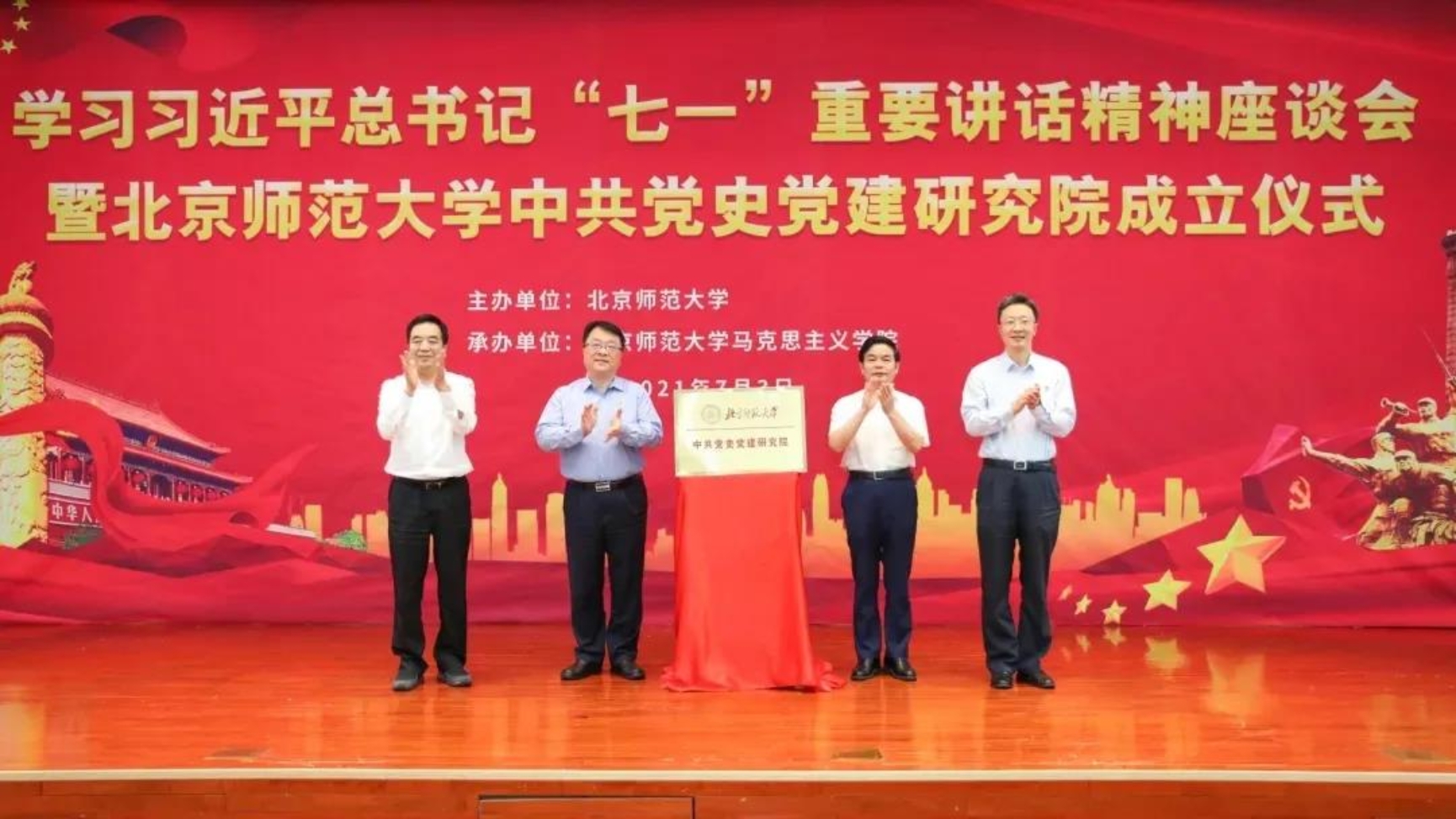 7月3日上午,世俱杯官方网站学习习近平总书记“七一”重要讲话精神座谈会暨中共党史党建研究院成立仪式在英东学术会堂举行。 会议邀请全国党建研究会顾问、中共中央组织部原副部长、中央党史研究室原主任欧阳淞教授,教育部社会科学司徐青森司长,清华大学2025世俱杯官网院长艾四林教授,中共中央党校(国家行政学院)党建教研部宋福范教授参加;世俱杯官方网站党委书记程建平,校党委副书记、校长董奇,校党委副书记李晓兵,2025世俱杯官网王炳林教授,艺术与传媒学院院长肖向荣教授,哲学学院院长吴向东教授,北京文化发展研究院执行院长沈湘平教授,历史学院朱汉国教授、李兴教授,2025世俱杯官网院长张润枝教授,教育学部党委书记施克灿教授,政府管理学院院长章文光教授,新闻传播学院党委书记方增泉研究员,以及来自校党委组织部、党委宣传部、党委统战部、党委教师工作部、党委学生工作部、档案馆、科研院的负责同志和2025世俱杯官网师生代表参加。会议由校党委副书记李晓兵主持。 徐青森发言 会议首先由教育部社会科学司司长徐青森致辞。他指出,习近平总书记“七一”重要讲话是习近平新时代中国特色社会主义思想的重要组成部分,是一篇充满真理力量的马克思主义纲领性文献。在中国共产党成立100周年的重大时间节点,世俱杯官方网站依托学科优势组建中共党史党建研究院,可谓正当其时。徐青森对世俱杯官方网站中共党史党建研究院提出三点期待:一是深入挖掘党史育人资源,为思政课教学提供有力支撑;二是深化党史党建理论研究,为党史学习教育做出积极贡献;三是加强师资队伍建设,为党史研究培养优秀后备人才。他希望中共党史党建研究院早日建设成为国内一流的、具有鲜明北师大特色的学术研究重镇、党史教育基地、新型高端智库。 程建平发言 校党委书记程建平在讲话中指出,举办学习习近平总书记“七一”重要讲话精神座谈会暨中共党史党建研究院成立仪式,充分体现了北师大推进党史学习教育走深走实的政治自觉、理论自觉和历史自觉,各位专家学者的发言抓住百年党史的历史主题,深刻阐释了中国共产党的历史性贡献,生动揭示了历史和人民选择中国共产党的深刻道理。习近平总书记“七一”重要讲话庄严宣告中国实现第一个百年目标,回顾了中国共产党的百年历程和奋斗成就;激励人心,弘扬伟大的建党精神;开创未来,吹响奋勇前进的号角。程建平强调,世俱杯官方网站整合学校优势力量,成立中共党史党建研究院,为思政课教学和课程思政建设提供学理支撑,为资政育人提供理论支撑,希望中共党史党建研究院能够凝聚人才、开展好有组织的科研,服务好国家重大战略,推出一批有理论深度、有广泛影响的成果,建设有特色有活力的党史党建学科。 董奇发言 校党委副书记、校长董奇宣布成立世俱杯官方网站中共党史党建研究院的决定。 揭牌仪式 欧阳淞、徐青森、程建平、董奇共同为中共党史党建研究院揭牌。 王炳林发言 在专家发言环节,世俱杯官方网站2025世俱杯官网教授、中共党史党建研究院院长王炳林指出,习近平总书记“七一”重要讲话系统回顾了中国共产党百年光辉历程和伟大成就,首次提出了伟大的建党精神,站在历史和全局的高度,提出了九条基本遵循,讲话内涵丰富,高屋建瓴,思想深邃,是激励全党全国人民向第二个百年目标努力奋斗的政治宣言和行动纲领。他指出,世俱杯官方网站成立中共党史党建研究院,有利于深化党史学习教育,有利于加强思政课程和课程思政建设,有利于充分发挥红色文化的育人功能。 欧阳淞发言 欧阳淞深入解读习近平总书记“七一”重要讲话,祝贺世俱杯官方网站成立中共党史党建研究院。他指出,习近平总书记“七一”重要讲话庄严宣告中国实现第一个百年目标,全面建成小康社会、历史性地解决绝对贫困问题;以民族复兴作为党的百年奋斗的历史主题,深刻总结党带领人民实现的“四个伟大成就”;提出“伟大的建党精神”并将其视为中国共产党的精神之源;明确指出以史为鉴、开创未来的九个方面要求;在四个重大问题上严正宣告中国共产党的态度;对全体党员和全国青年提出殷切希望。在庆祝党的百年华诞之际,世俱杯官方网站成立中共党史党建研究院是贯彻习近平总书记重要讲话精神的实际行动和责任担当,具有重大的政治意义和学术意义,可谓具备天时、地利、人和。 艾四林发言 艾四林表示,世俱杯官方网站中共党史党建研究院的成立是马克思主义理论学科的一件大事,可喜可贺。他指出,伟大的建党精神集中体现了马克思主义的世界观和方法论。建党初期,先驱者们思考建设一个什么样的政党和如何建设一个政党,把马克思主义写在自己的旗帜上;坚持真理,体现了马克思主义的科学性,不负人民,体现了马克思主义的人民性,坚持斗争,体现了马克思主义的斗争性,践行初心使命,体现了马克思主义的实践性。伟大的建党精神是知、情、意、行四个方面的有机统一,精神源头和精神谱系是源远和流长的有机统一。 宋福范发言 宋福范指出,世俱杯官方网站依托自身优势成立中共党史党建研究院,一定能为党史党建学科发展作出新贡献。从党史看,“七一”重要讲话在阐述党和国家的大政方针方面具有综合性的特点,包含回顾历史历程、总结历史经